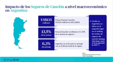 De acuerdo con la Asociación Panamericana de Fianzas1, a nivel macroeconómico en Argentina los seguros de caución significaron tan sólo en el año 2020, un total de US$135 millones. Estos seguros constituyen según las últimas mediciones el 13,5% de la cartera a nivel nacional y posicionan al país como el 5to en primaje. A nivel regional, se sabe que ocupan un 6,3% del total.