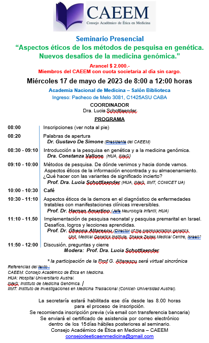- «Aspectos éticos de los métodos de pesquisa en genética. Nuevos desafios de la medicina genómica.»